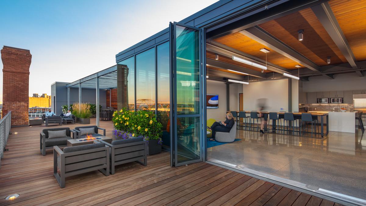 Besides conversations, solo work and social connections, outdoors spaces can support collaborative meetings or larger team stand-ups.